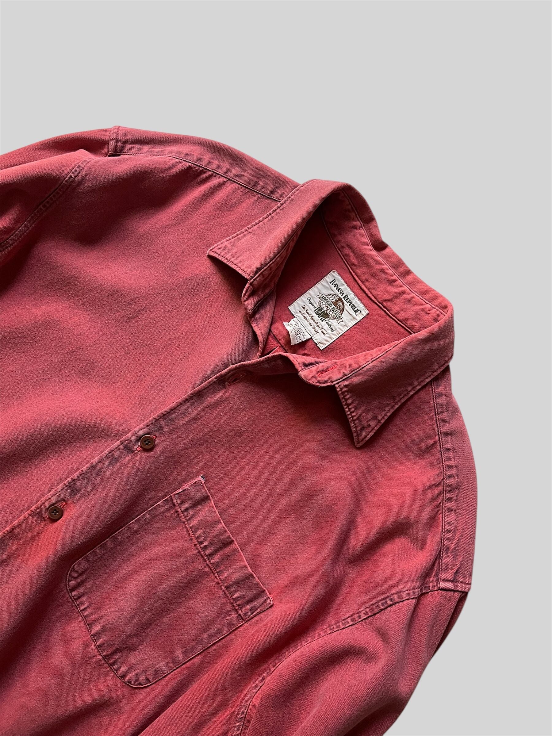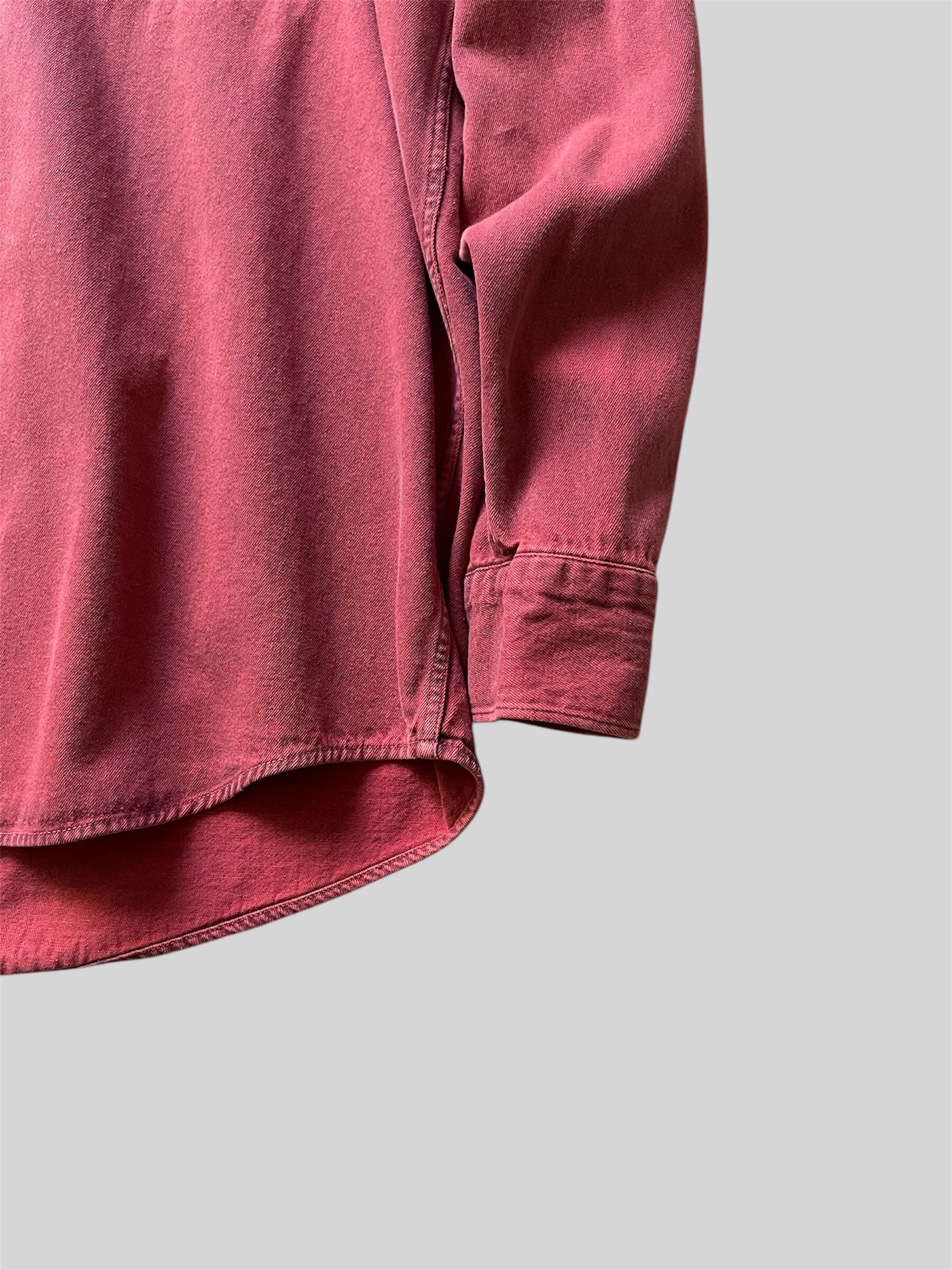 味わい深く色気ある絶妙なカラーリングの、赤いシャツです