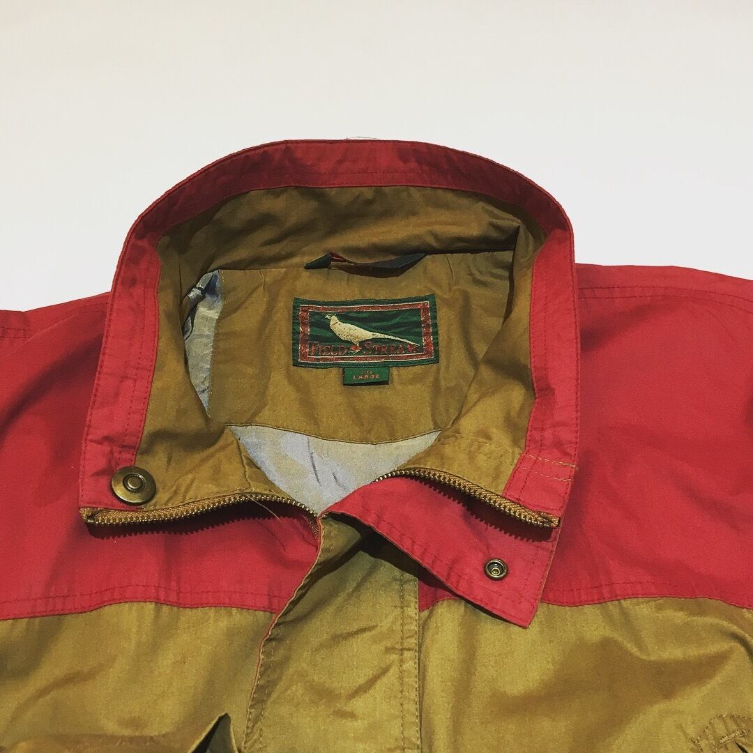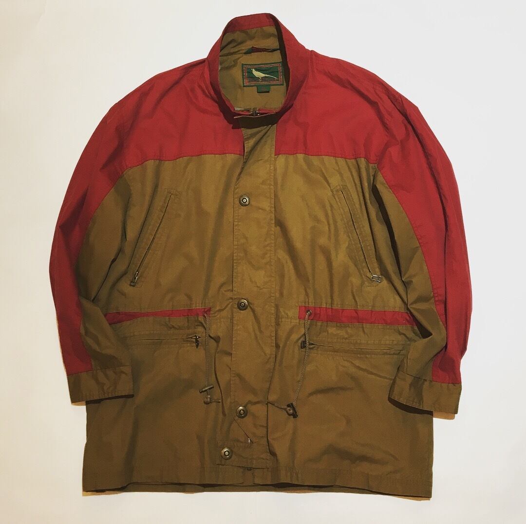 濃いブラウンと、深いレッドカラーの2トーンの配色に目を奪われますね。ハリのある生地感が表情もあって良いですね。スナップボタンというところも気に入っております。今時期の羽織として重宝するはずです。前の持ち主のリペアがあります。画像にて確認して頂けたらと思います。