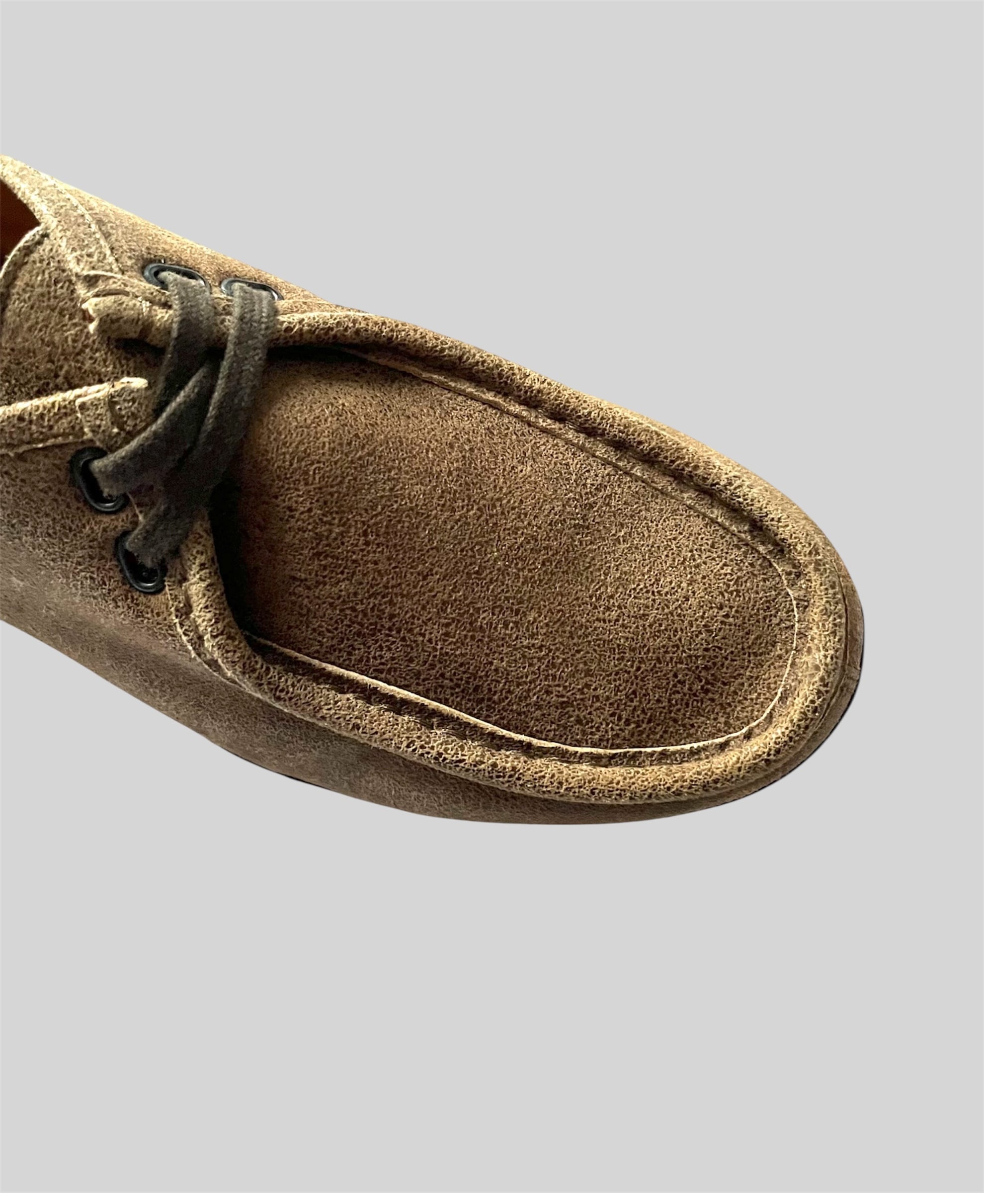 ひび割れ加工された良い風合い、非常に魅力的なシューズ。絶妙なカラーのブラウン、最高ですね