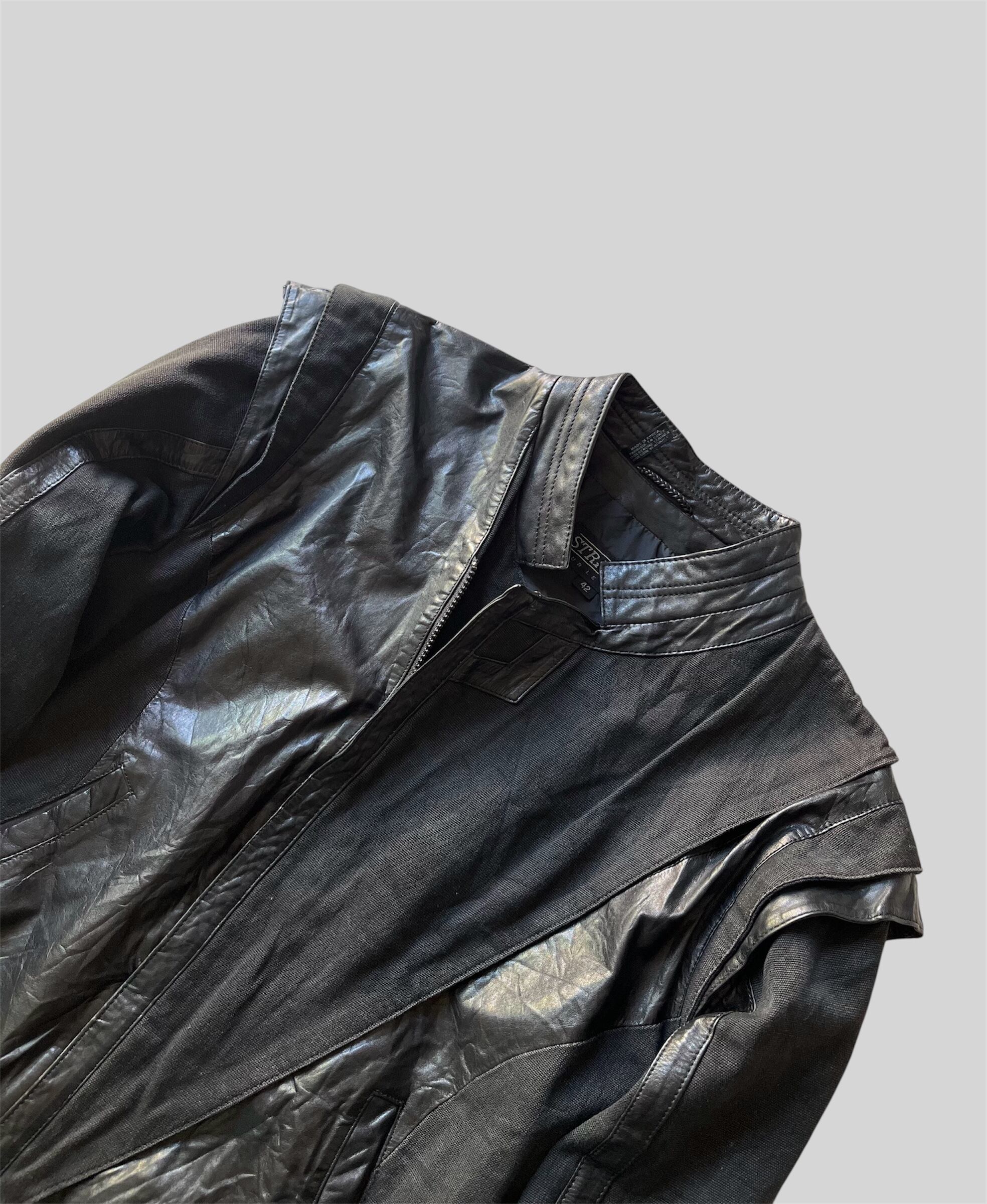 レザーとコットンキャンバスの、秀逸で多彩な切り替え。肩部分のつくりも、独特でクセになります