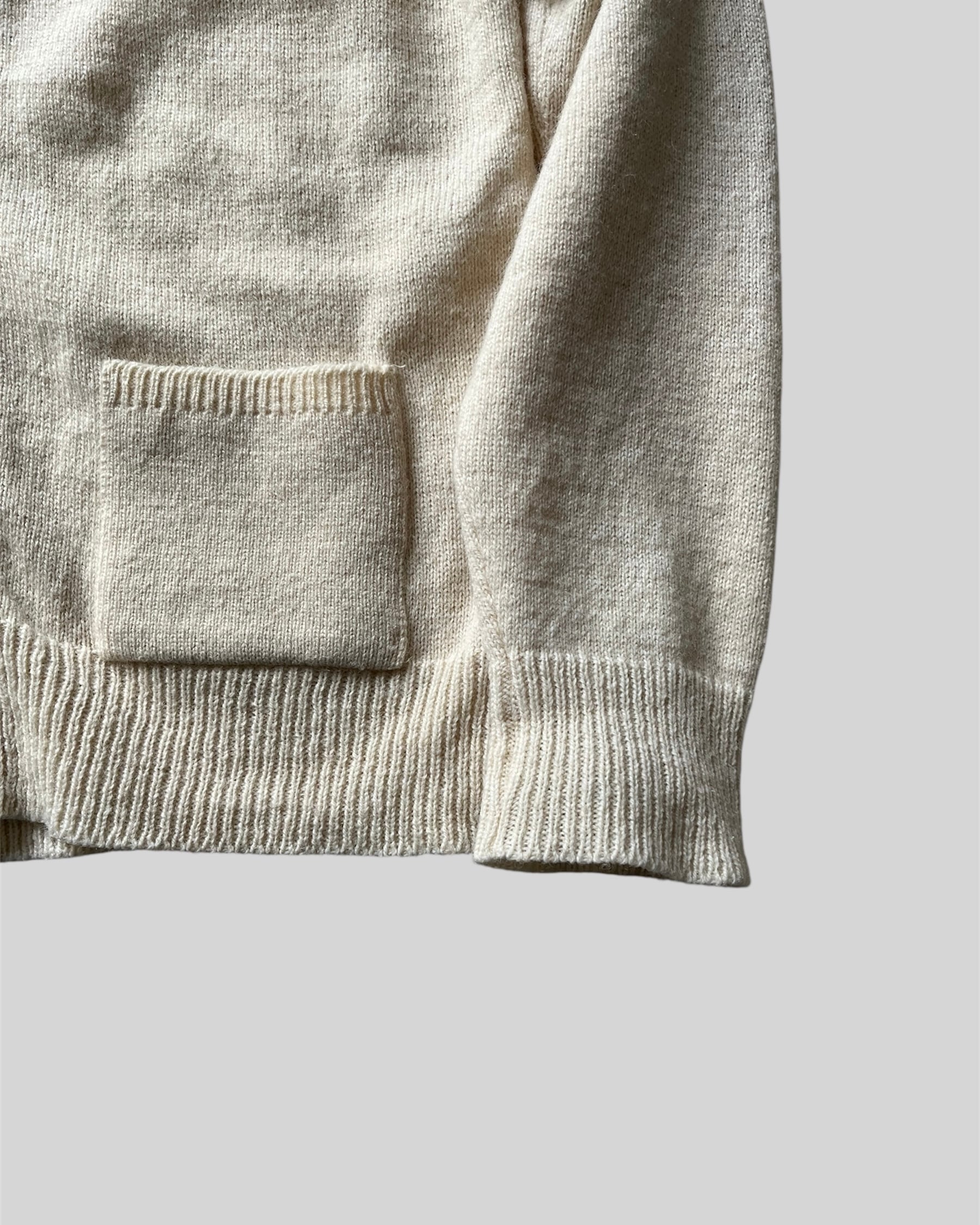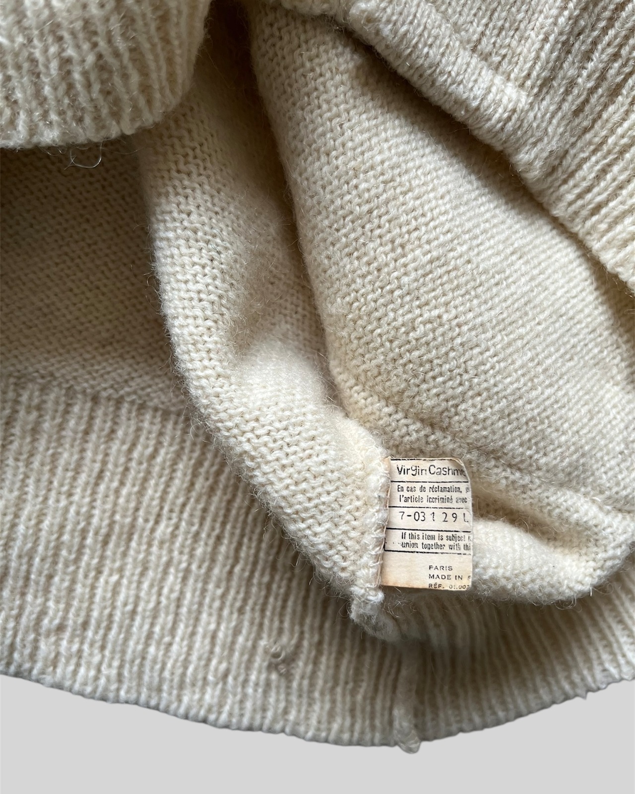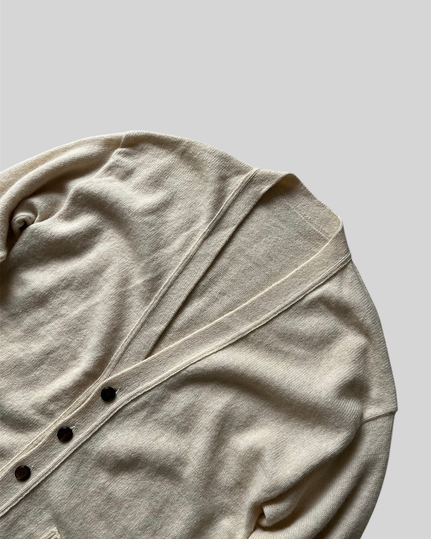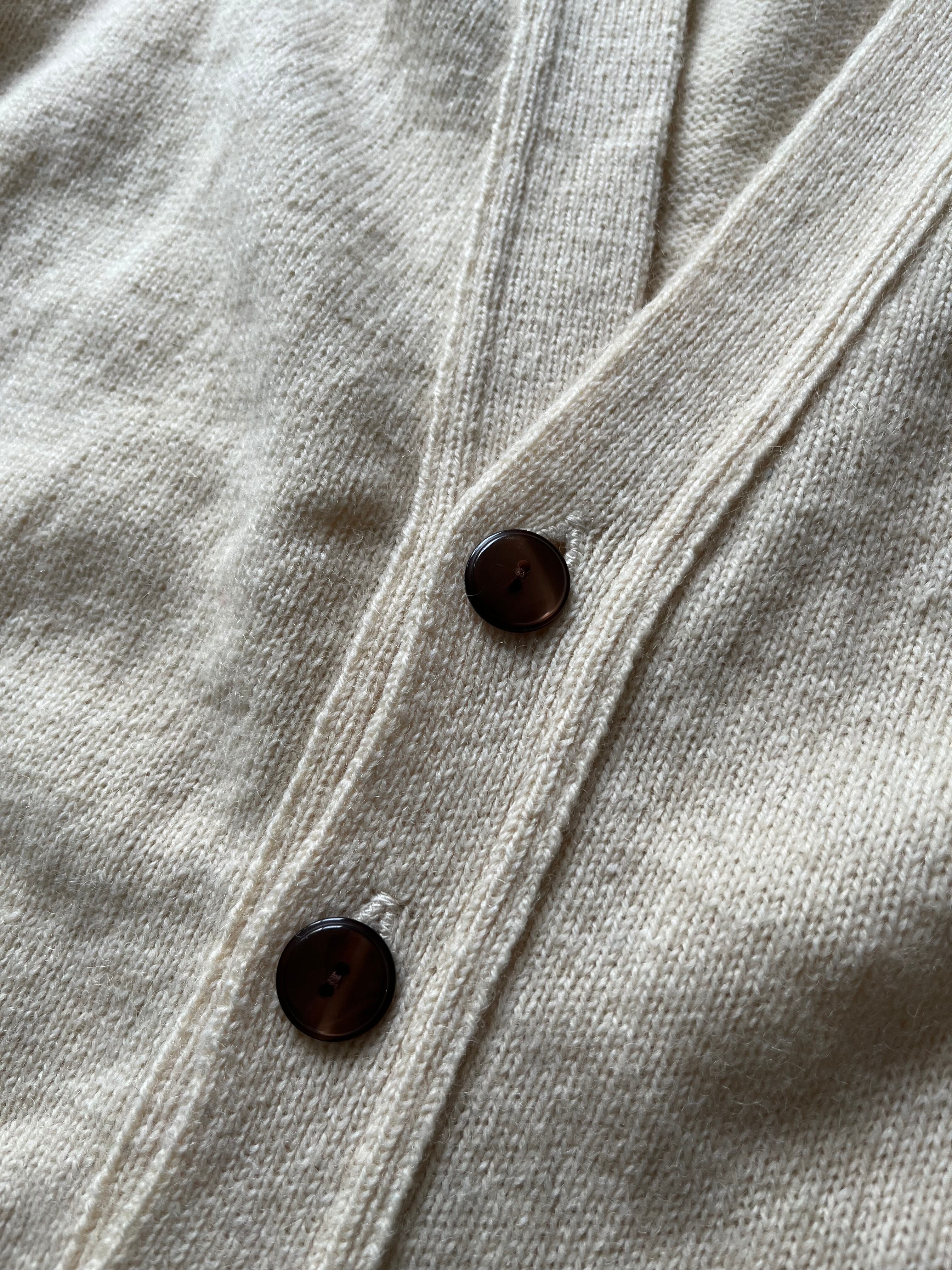 70年代のフランス製、カシミアとウールのニットカーディガンです。優しいクリーム色が非常に上品ですね