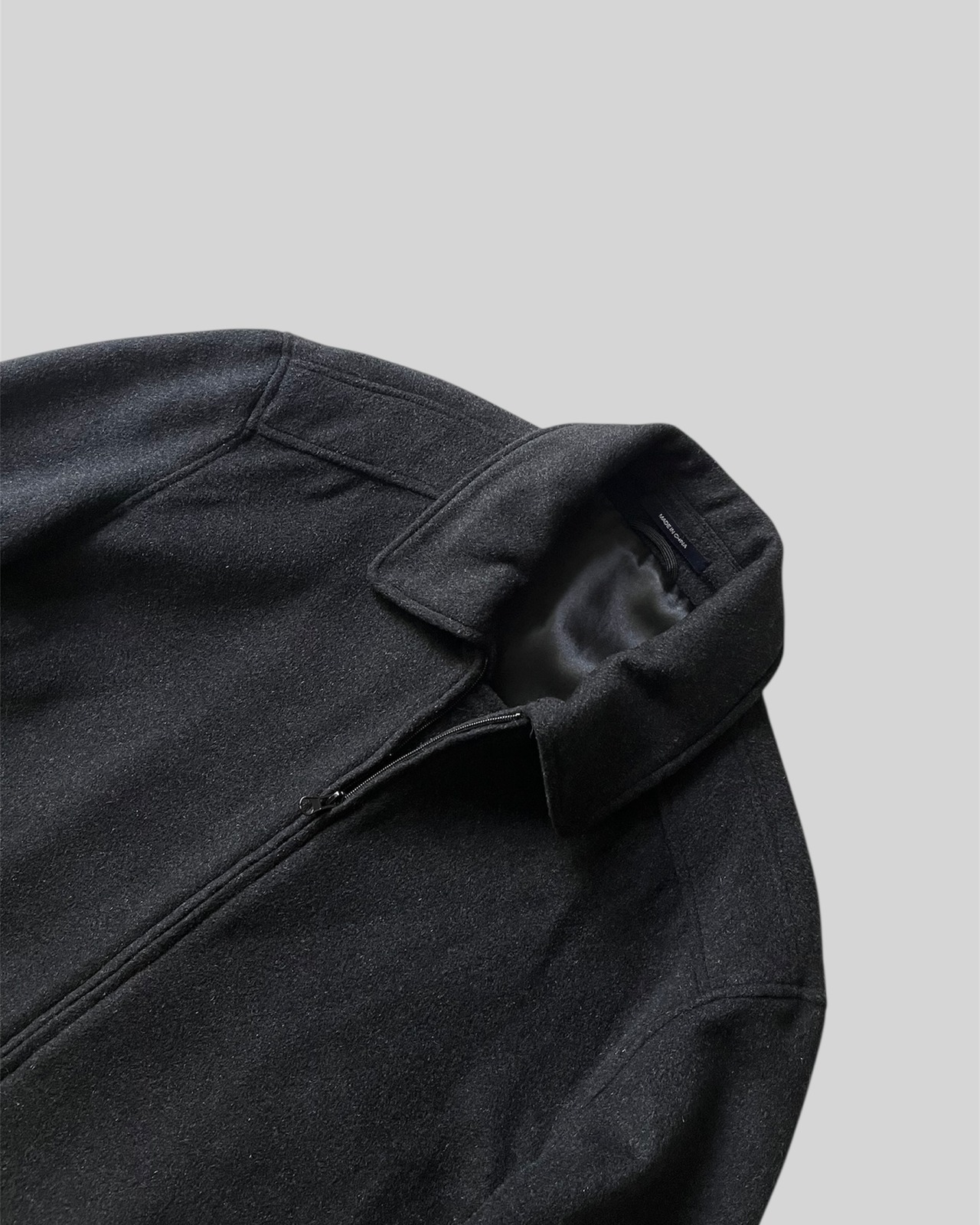 チャーコールグレーで柔らかく、しなやかなウール、最高です。流行り廃りのない形かと思います。お好きな方お待ちしております