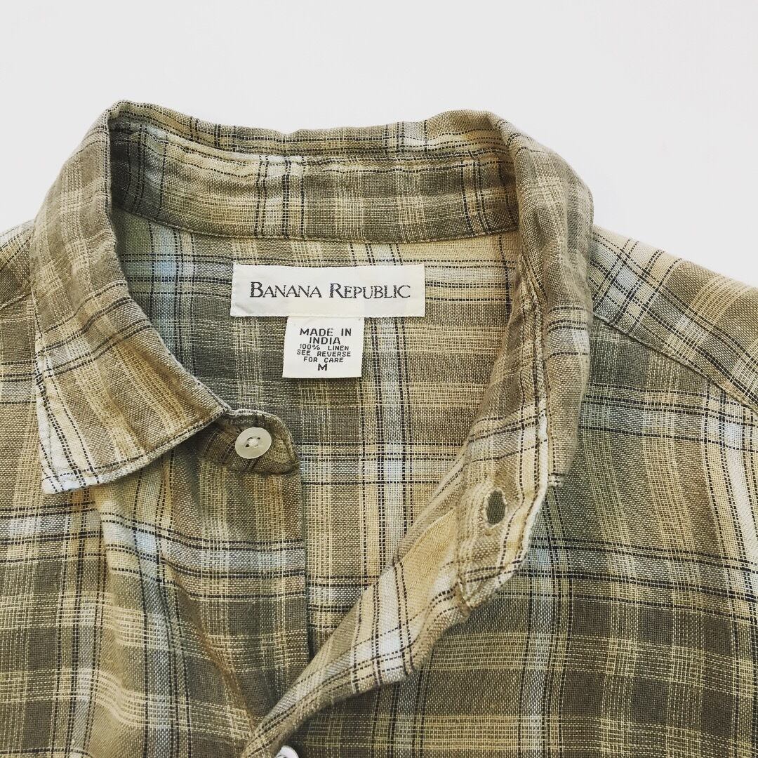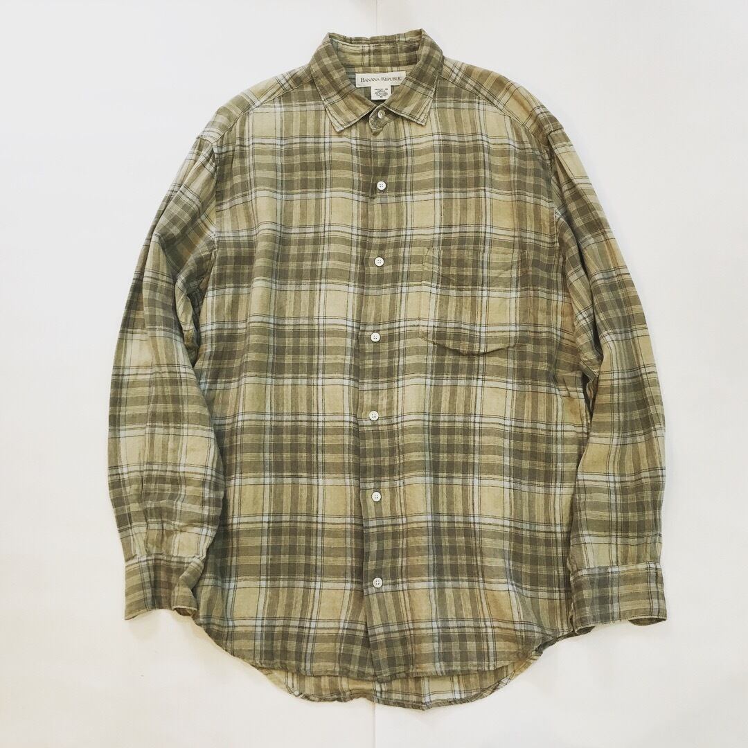 [BANANA REPUBLIC] linen plaid long sleeve shirt