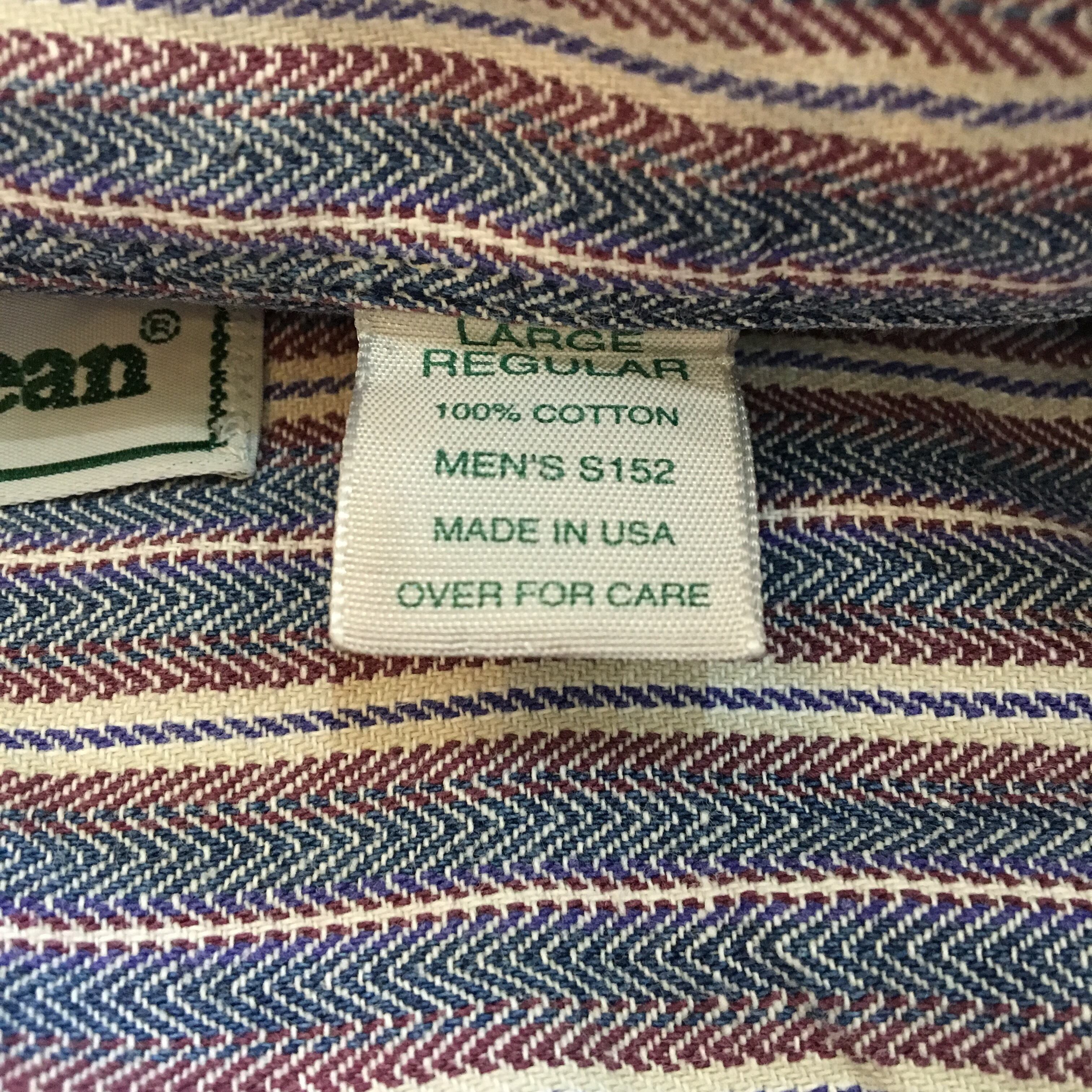 アメリカ、アウトドアメーカーのエルエルビーンのコットンロングスリーブ、ボタンダウンシャツです。配色の良い綺麗なヘリンボーンが目を惹きますね。アメリカ製というところも良いです。