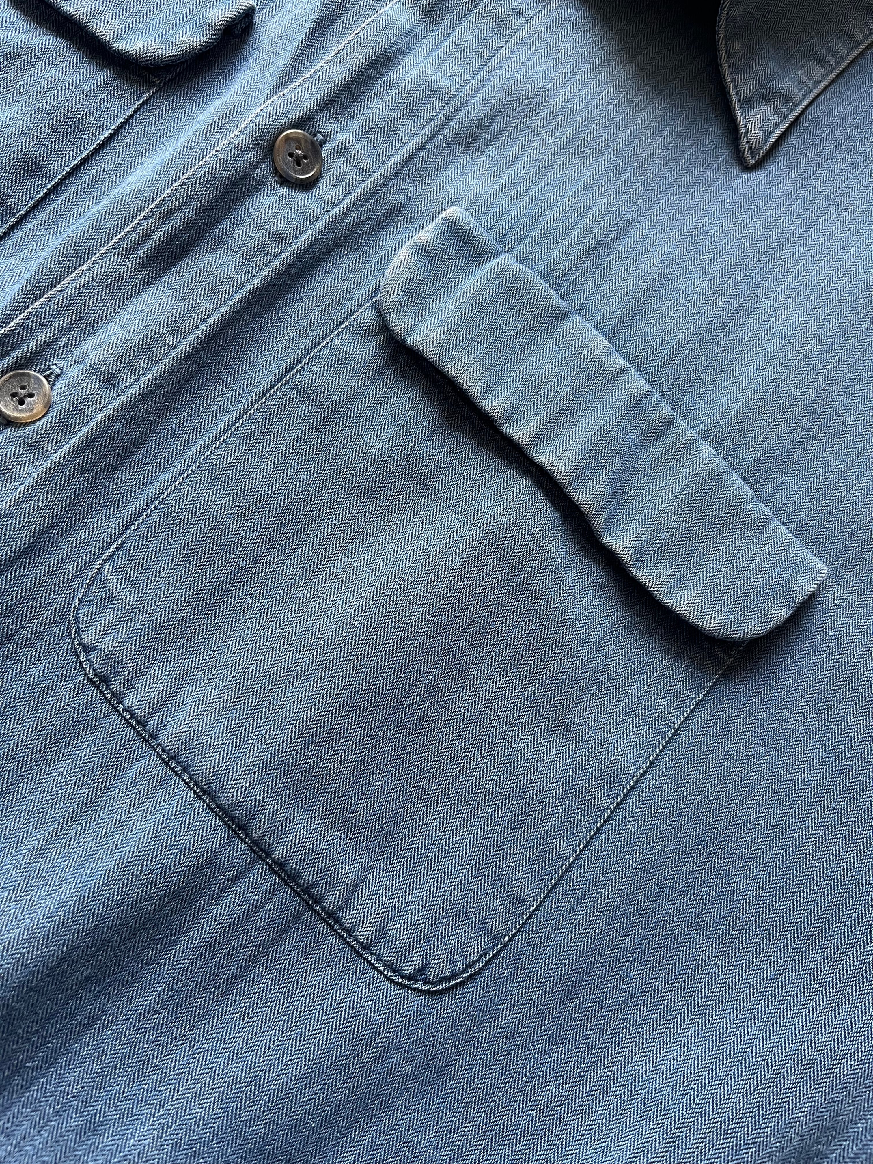 デニムのような表情のヘリンボーンツイルが美しい。色褪せが良い雰囲気ですね