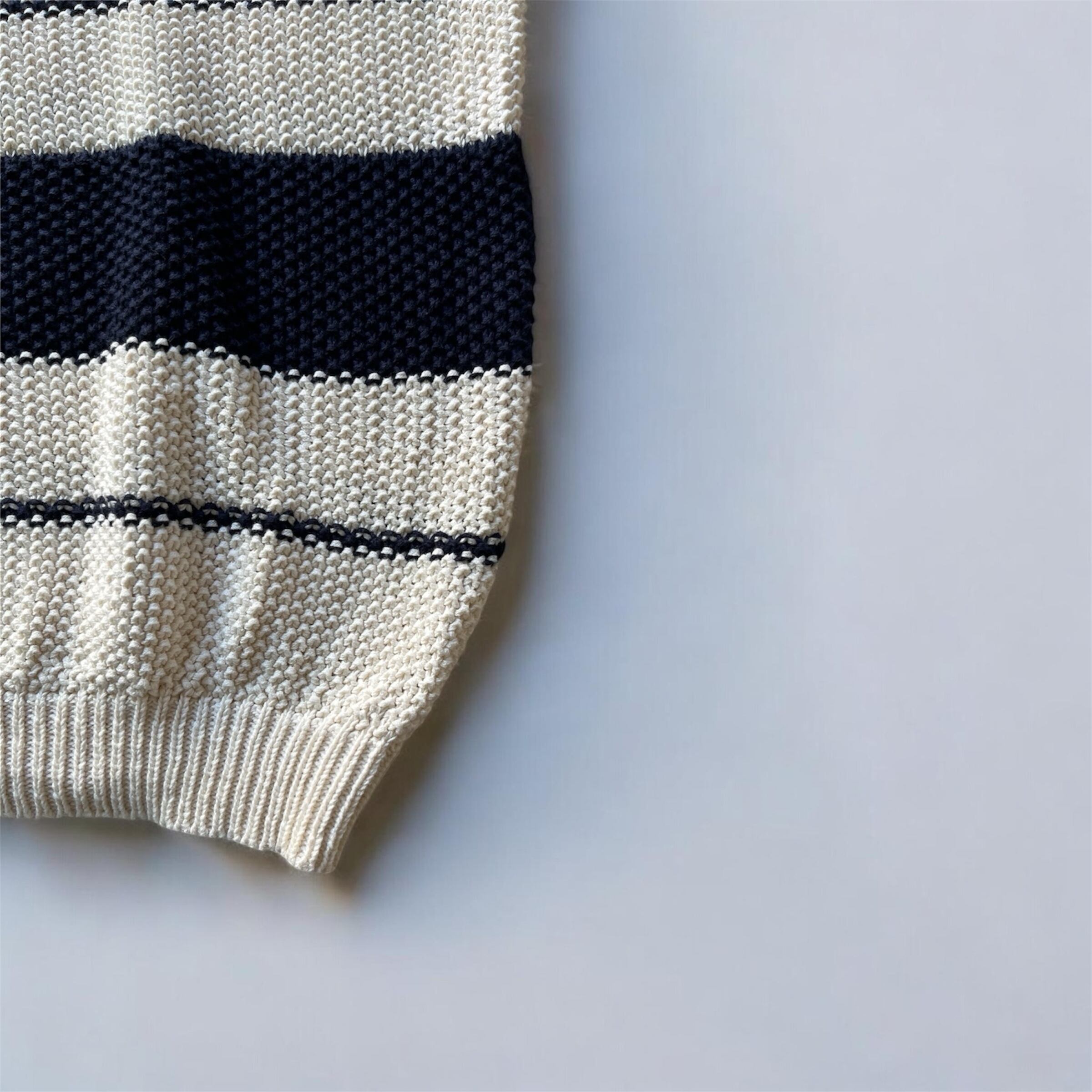 定番のボーダー、でも半袖ニットになると、少し特別な気がします。柔らかなコットンを楽しんで頂けます
