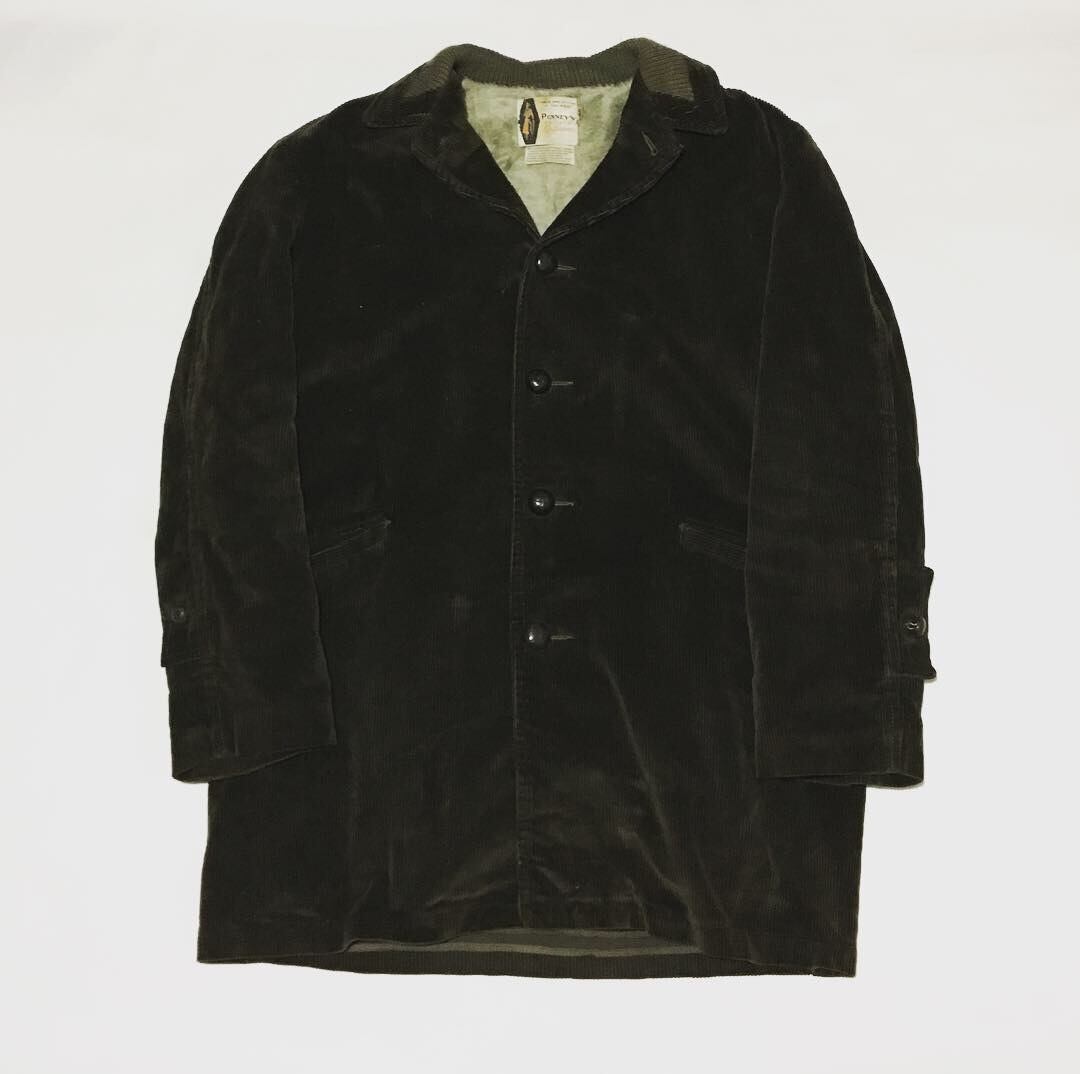 アメリカのブランドペニーズのコーデュロイコートです。太いコーデュロイが特に、冬に調子が良さそうです。深く、色気あるダークオリーブカラーも素敵な1枚です。裏はボアになっており暖かくアウターとしても最適です。着て頂くと肩のハリもなくナチュラルに着て頂けます。