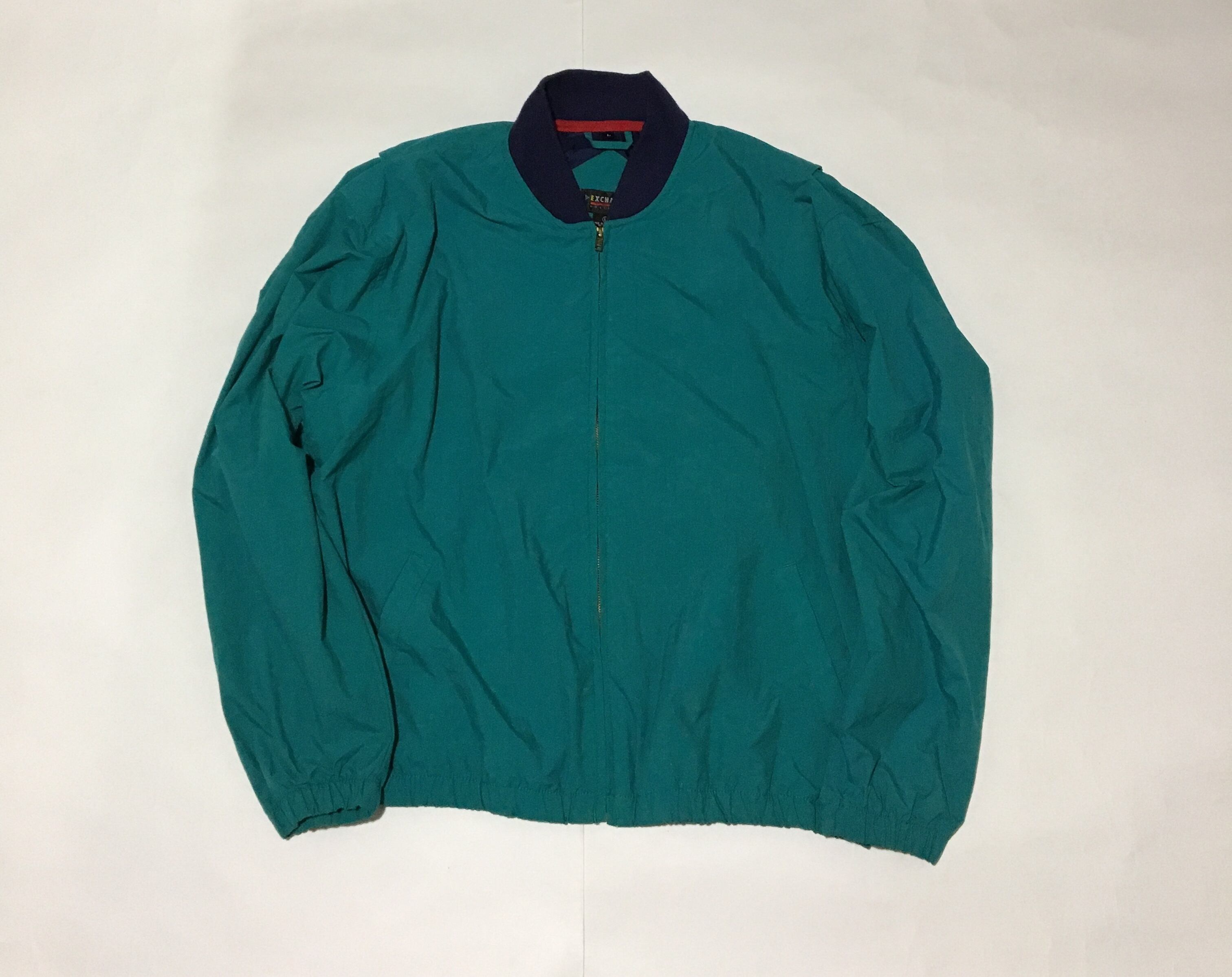 発色の良いエメラルドグリーンのナイロンブルゾン。光沢間の少ないマットなナイロンを使用しております。エメラルドグリーンとネイビーのリブのコントラストも楽しんで頂けるかと思います。個人差はありますが身幅はたっぷりとしており羽織って使って頂くと、調子が良さそうです。