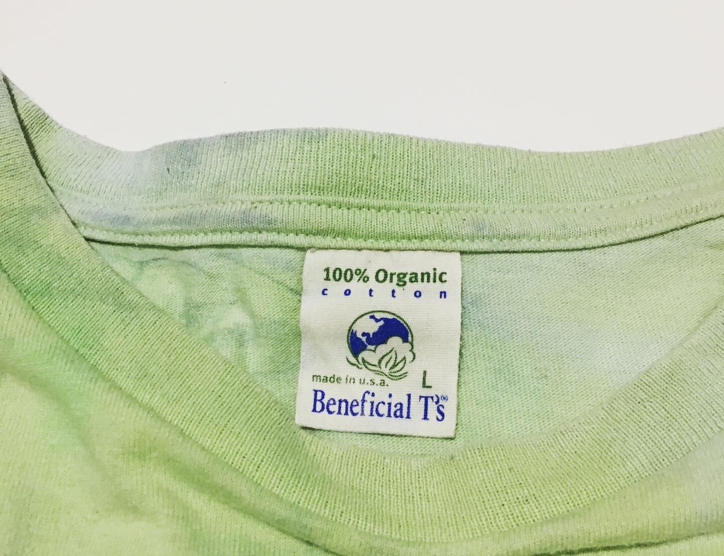 前、後ろに乱雑にカラフルなペイント。綺麗なライトグリーンボディに胸元のワッペンがまた愛くるしいですね。しっとりとした、柔らかいオーガニックコットンを使用した、アメリカ製です。夏に色で楽しめるTシャツです。