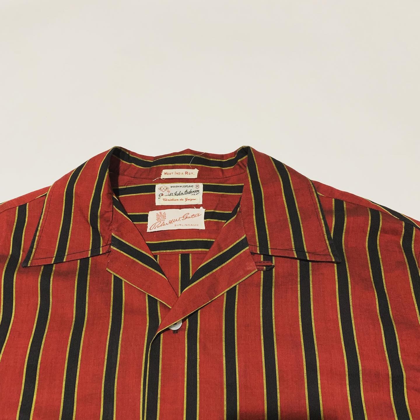 濃く深い味わいあるバーガンディベースに、ブラックとゴールドのストライプもまた色気があり、良いカラーリングですね。スコットランドで織られて作られており、オールドのタグもかっこいい。サイズはMサイズですが大きめな作りになっております。個人差はありますが比較的ゆったりと着て頂けます。
