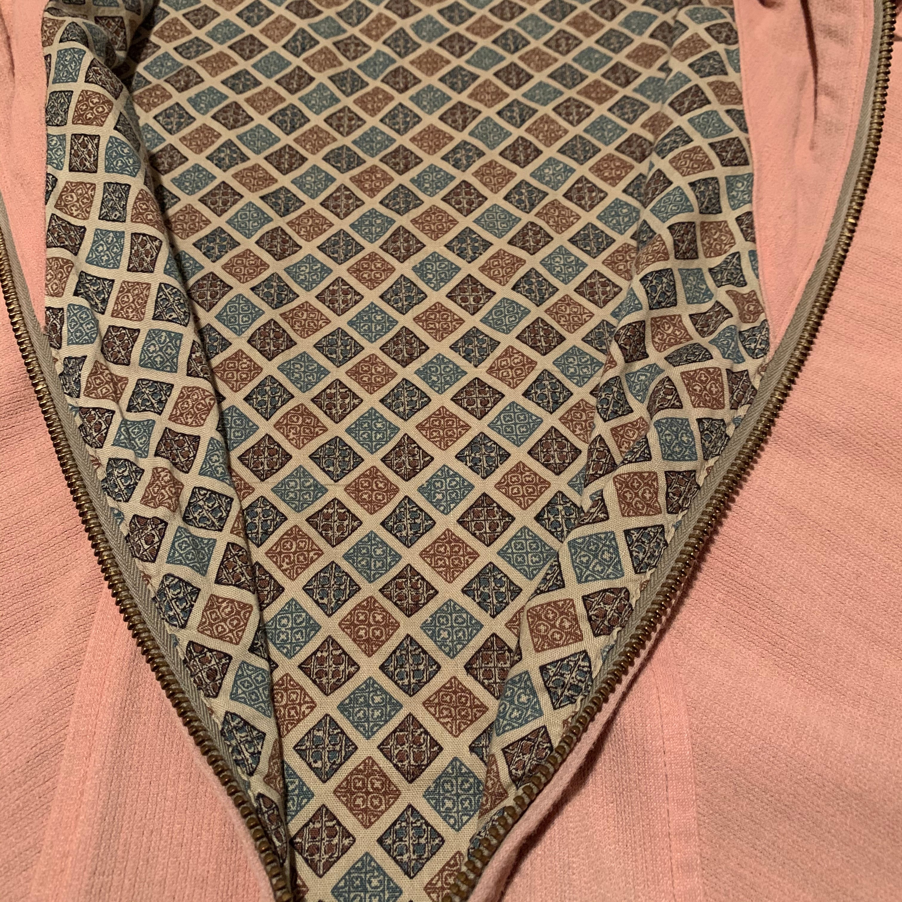 50年代と思われる、アメリカ老舗ブランドシャンハウスのギャバジンジャケットです。柔らかく配色の良いピンクがとても良いですね。近くで見て頂くと、ヘリンボーンのような織りが入っていて、見ても楽しい1枚かと思います。
