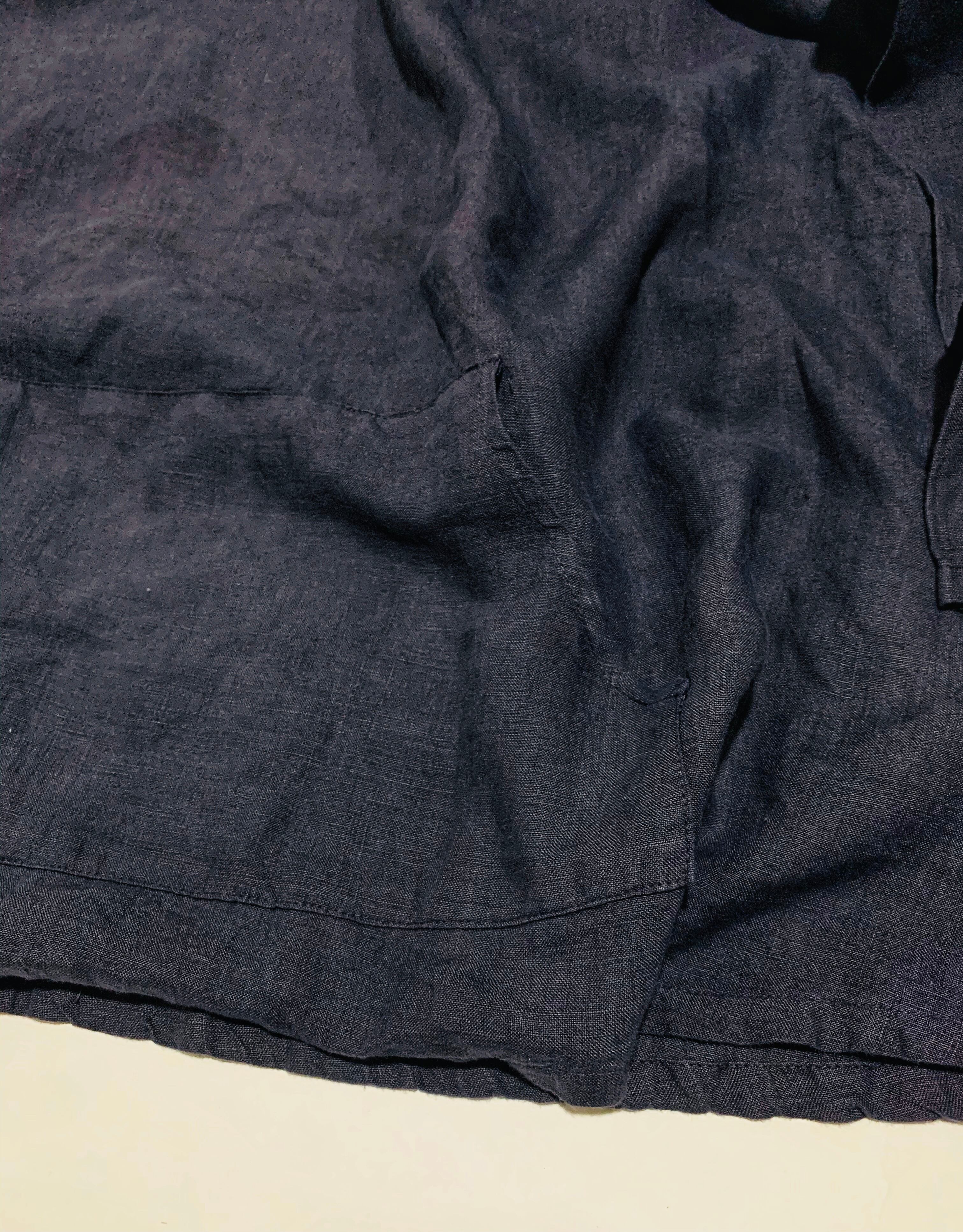 ダークネイビーカラー、オールリネンのパーカーです。シャツやジャケットではなく、パーカーというところが比較的珍しいかと思います。乾いたリネン100%生地で春夏は特に活躍してくれるはずです。