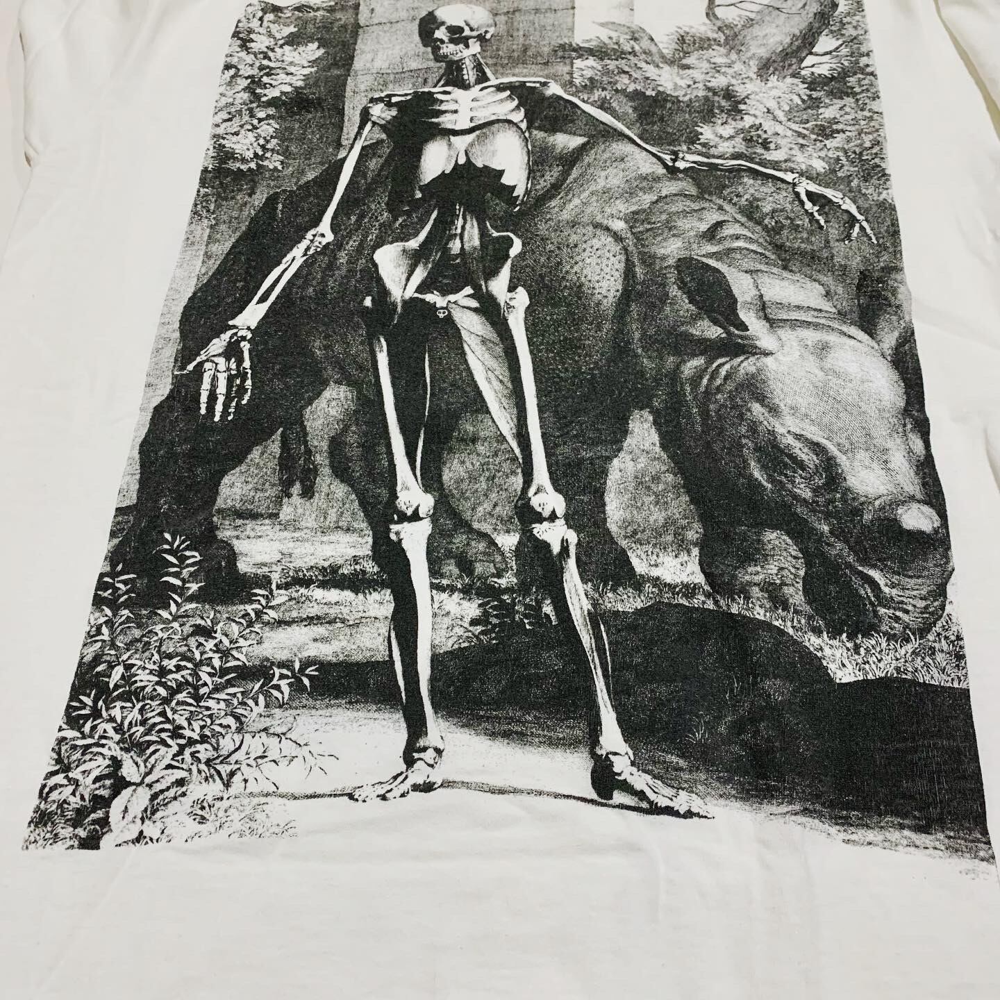 芸術的なプリントTシャツです。バッグプリントもしっかりと楽しんで頂けます。90年代フルーツオブザルームボディのアメリカ製というところも嬉しいです。裾、袖はシングルステッチです。