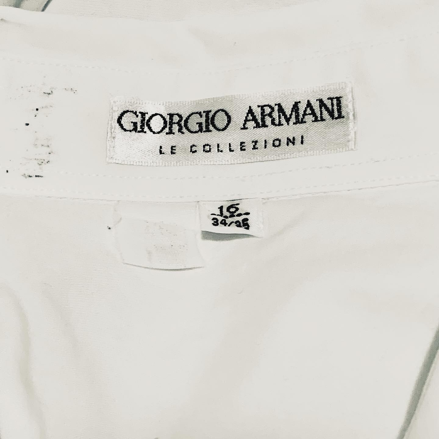 清潔感ある佇まい、品を感じるコットンロングスリーブシャツはジョルジオアルマーニのもの。