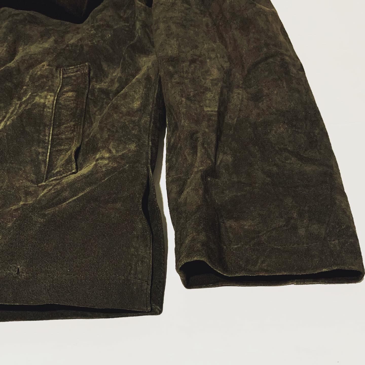 深い味わい深いオリーブカラーのスエードジャケットです。本革でかなり色が良いです。