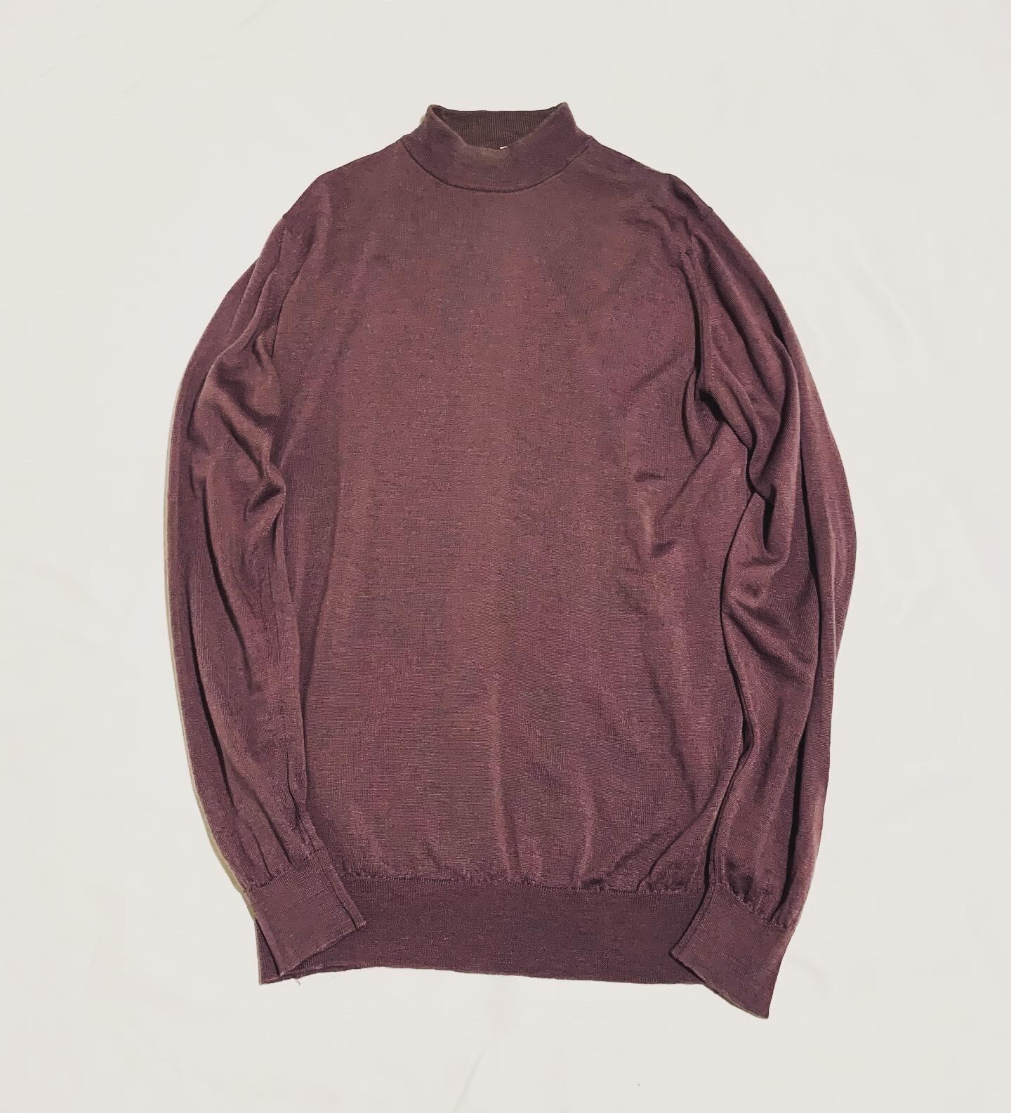 イギリスのファインゲージニットウェアのブランド、ジョンスメドレーのモックネックニットです。