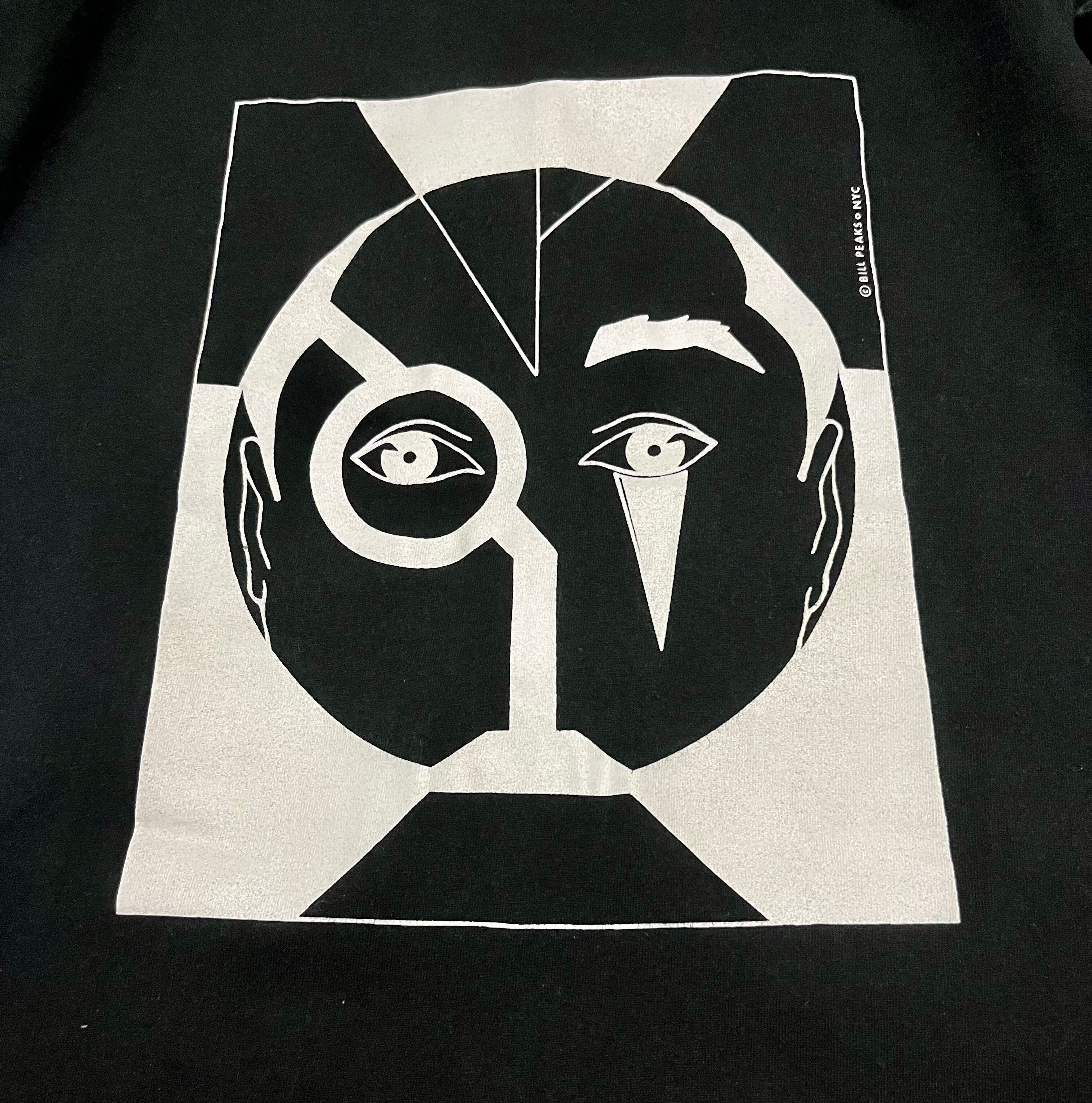 ニューヨークのデザイナー、ビルピークスのプリントTシャツです。ブラックボディにホワイトプリントがアーティスティックな印象です。
