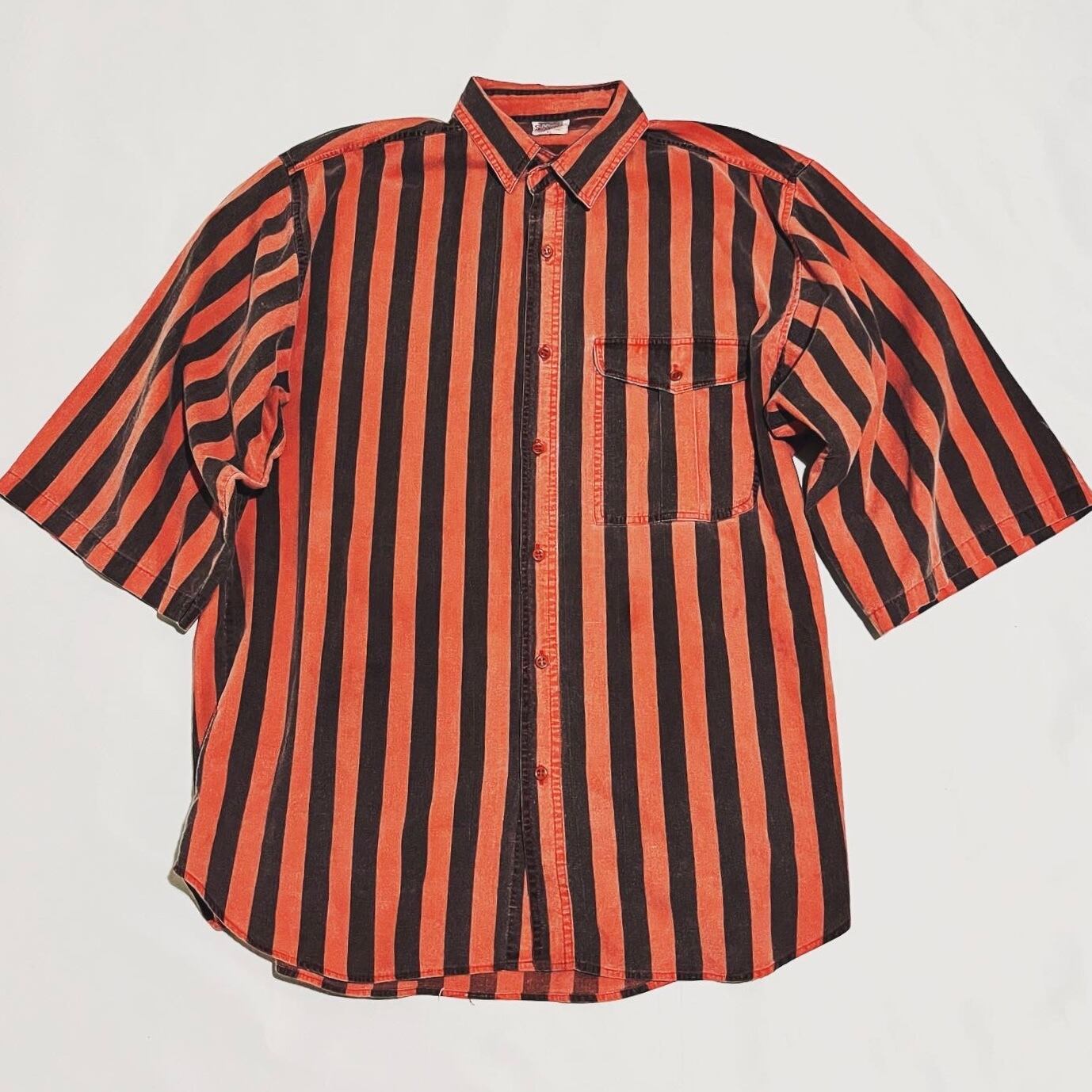 袖丈が長く、個人差はありますが8分丈くらいまでいく面白いシャツです。大量生産ではなく1点物の古着の魅力が詰まった1枚かと思います。