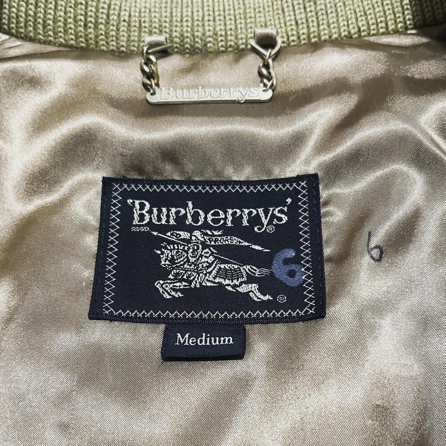 バーバリーの中綿入りブルゾンです。淡いベージュカラー。綺麗な肩落ちが期待できる一枚袖は、最高です。上質なスモールフェザーダウンを使用しておりふかふかとした上質な着心地で、ダウンも抜けていない為、防寒性もかなり高いです。