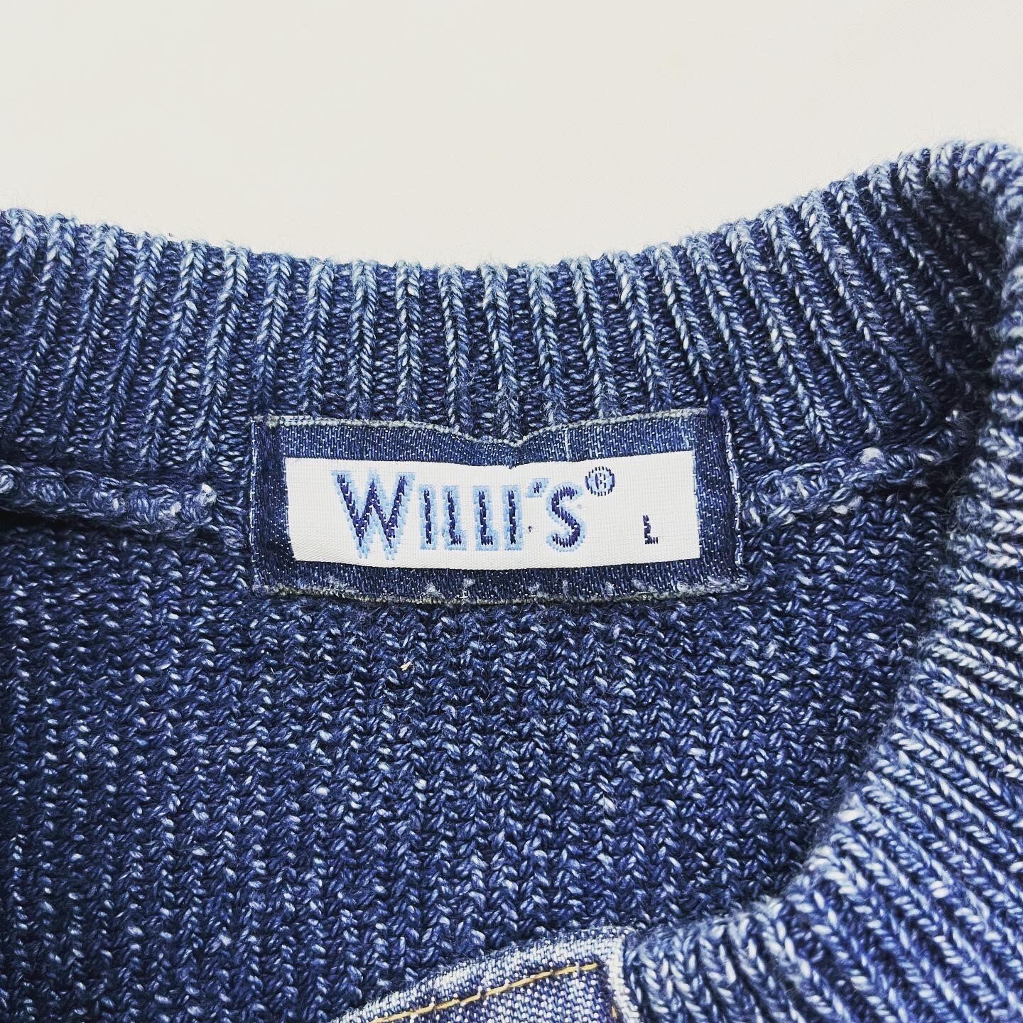 ピュアインディゴの綺麗なニット。ブルゾンとカーディガンをミックスした様な印象です。