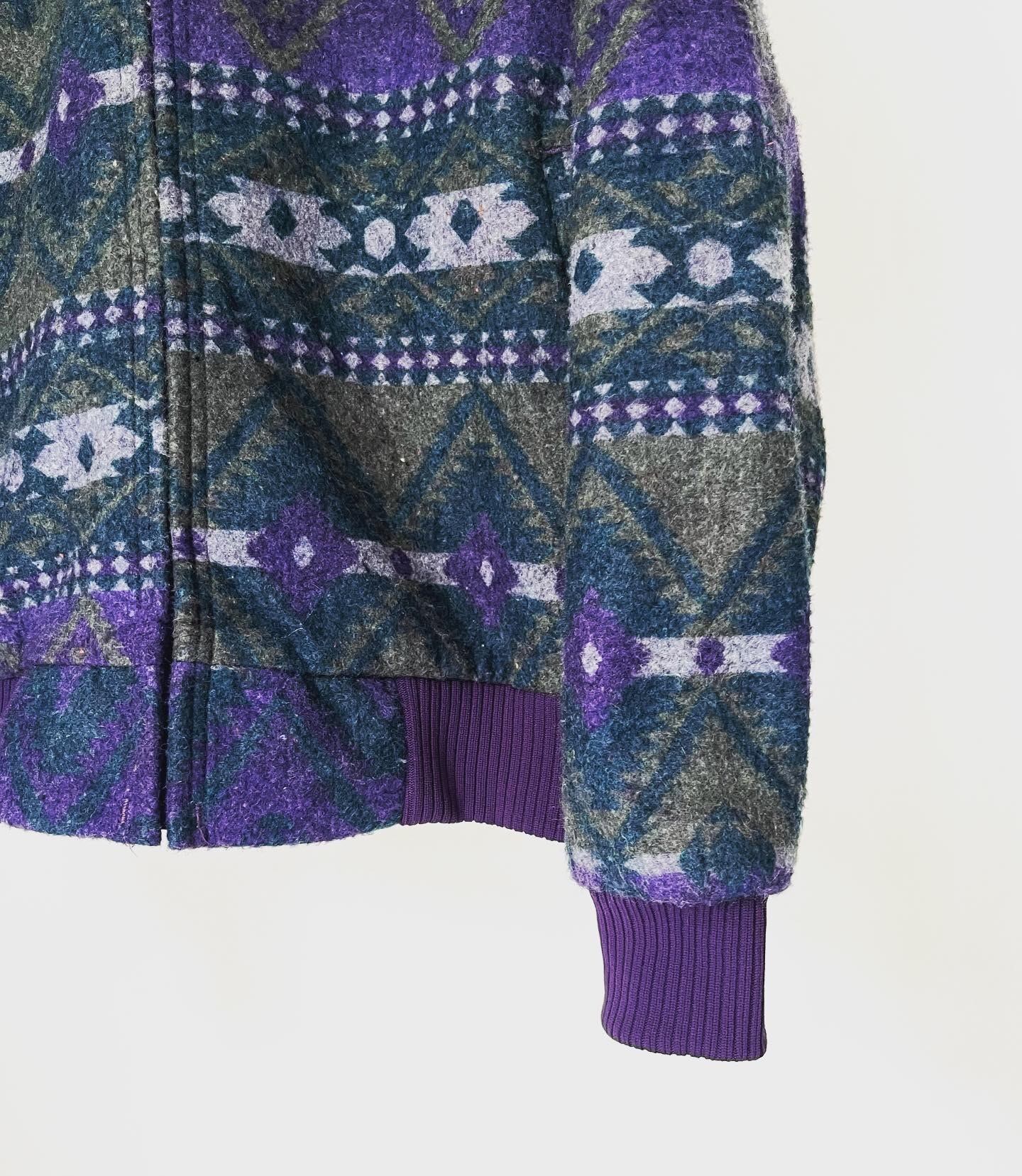 リブ、裏地、ジッパーもパープル、そしてグリーンとグレーのネイティブ柄が非常に魅力的です。