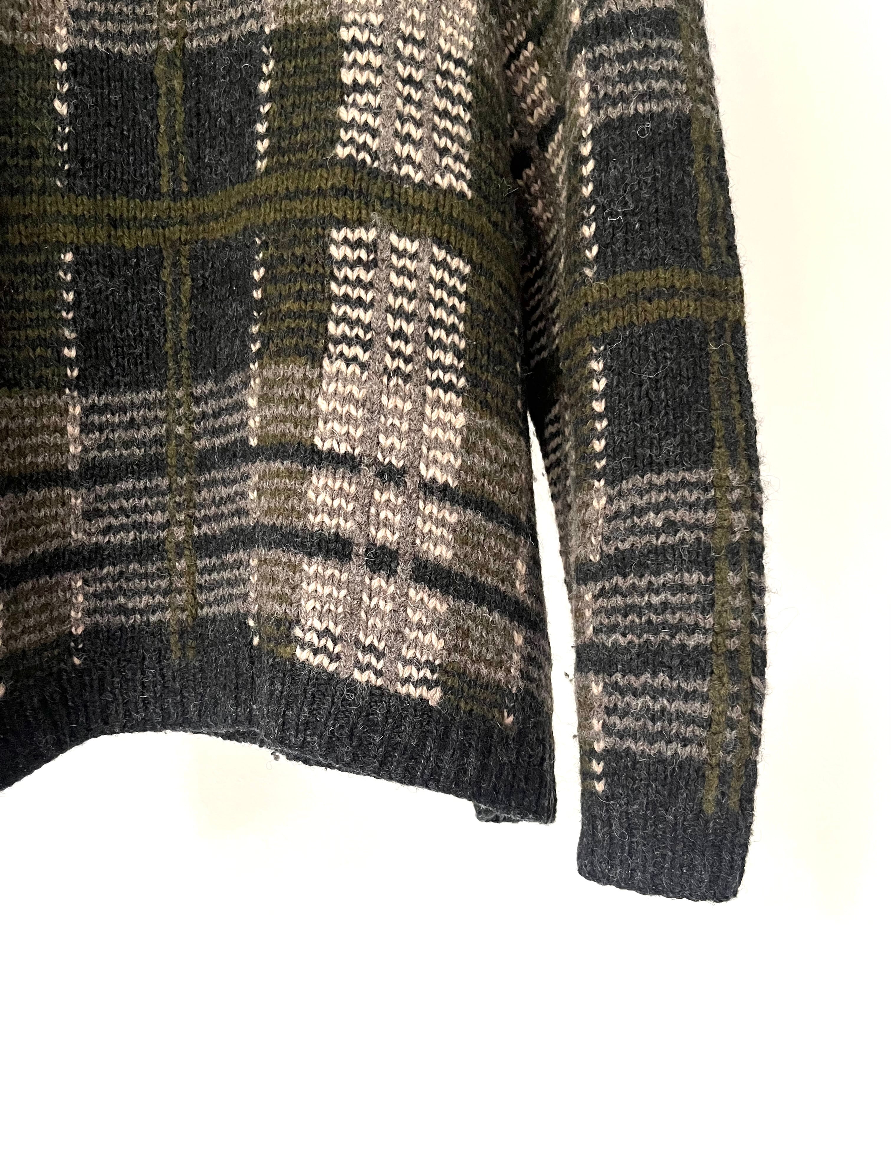 スコットランドの北にある、シェットランド諸島に生息する羊からとれるウール、シェットランドウールのニットです。タグにハンドニットと、手が込んでますね。軽くて暖かく、品質が高いです。