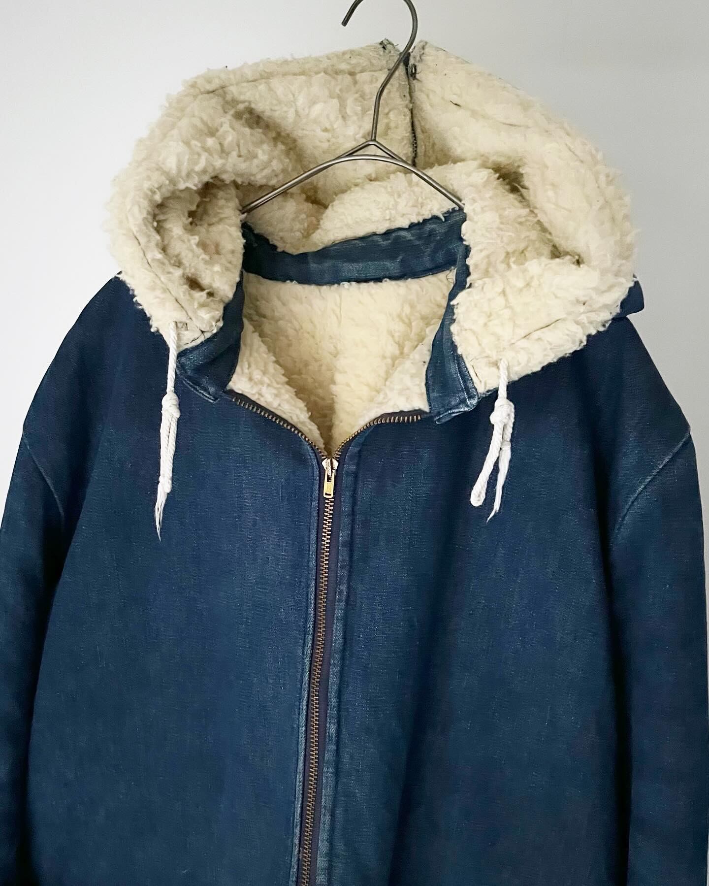 古着ですと、デニムパーカーは球数が、少ない印象ですが、こちらはフード付きのコートってところも素晴らしいですね。