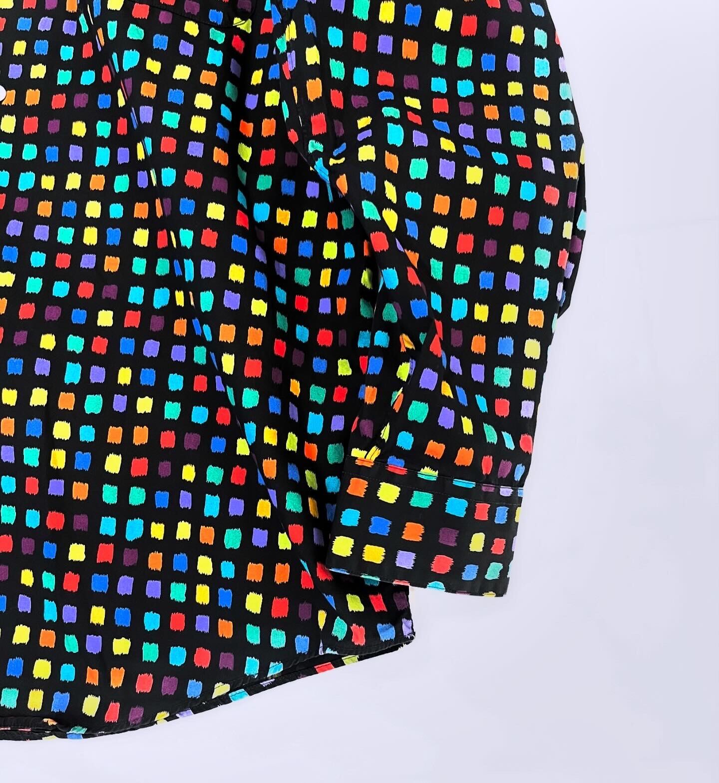 ブラックベースにカラフルな柄が全体に美しく入っております
