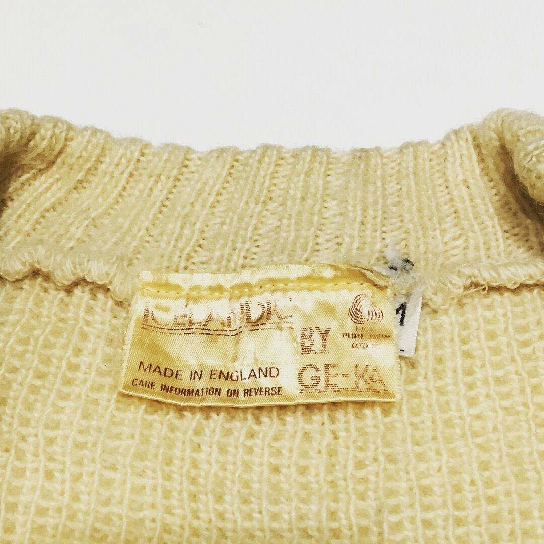 胸元全体に消えそうな柄が入る、イギリス製のニットです。ライトグレーと、クリームカラーの相性も非常に良いですね。全体的に毛足の長さがあり、品を感じるニットです。肌触りも良く、チクチクとしたウールならではの質感が少ない1枚です。アウターのインナーに使った際にも、程良く主張してくれます。
