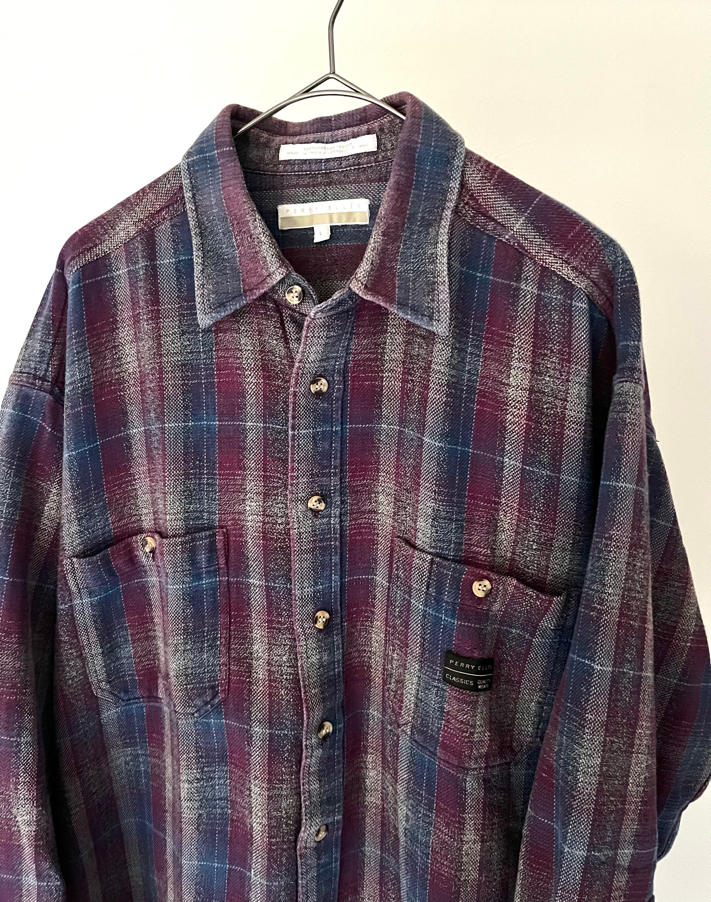 ぼんやりとしたチェック、サイズもゆったりとしており、ざっくり着て頂けます