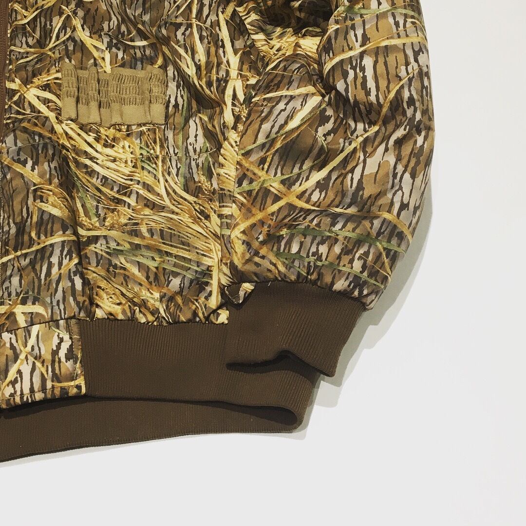 リアルツリー柄の配色に目を奪われます。中綿入りで暖かく、アウターとして使って頂けます。柄の方でも楽しめて、無地の方もブラウンカラーなので両面楽しめるジャケットです。