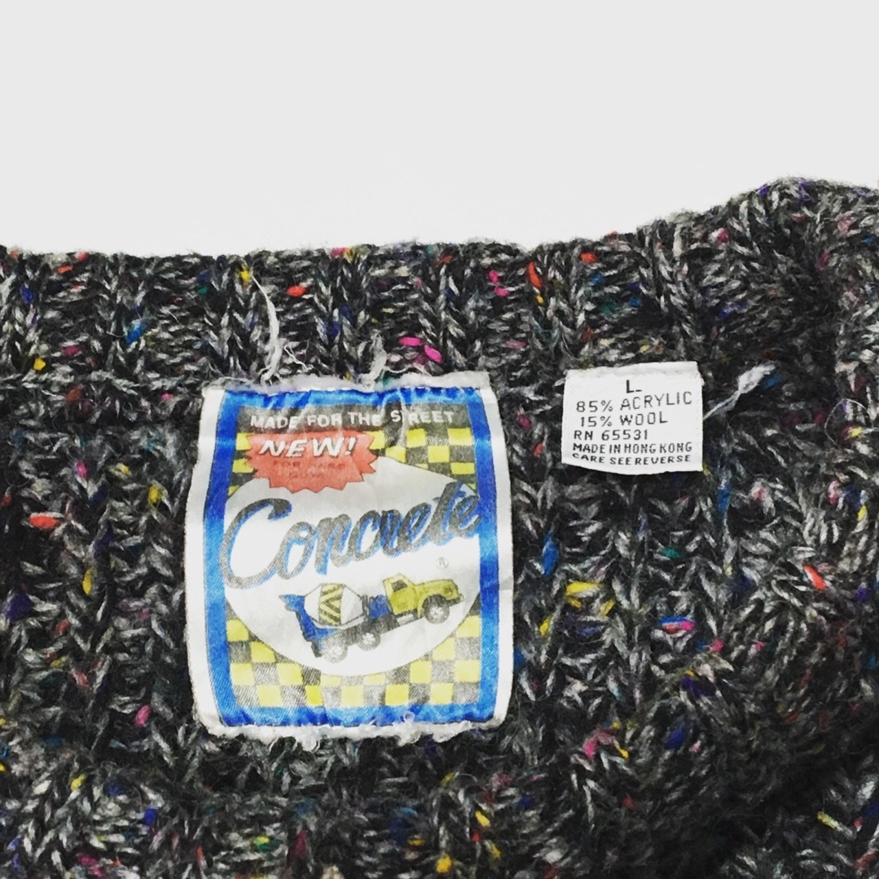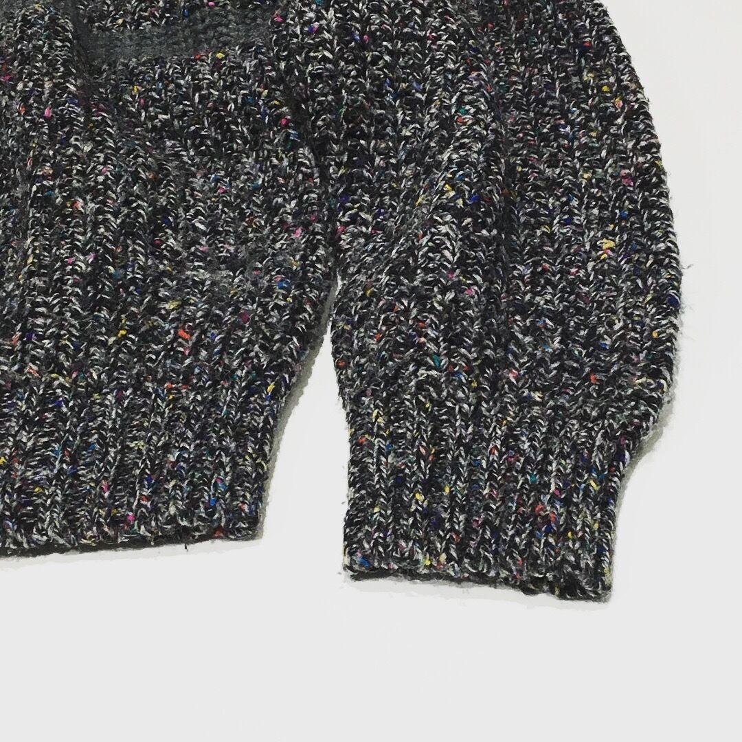 落ち着いた配色のニットに、ショッキングピンクのボーダーが効いてますね。カラフルなネップも非常に良い表情です。アクリル混の為ニットならではのチクチク感が少ないので、着やすいかと思います。