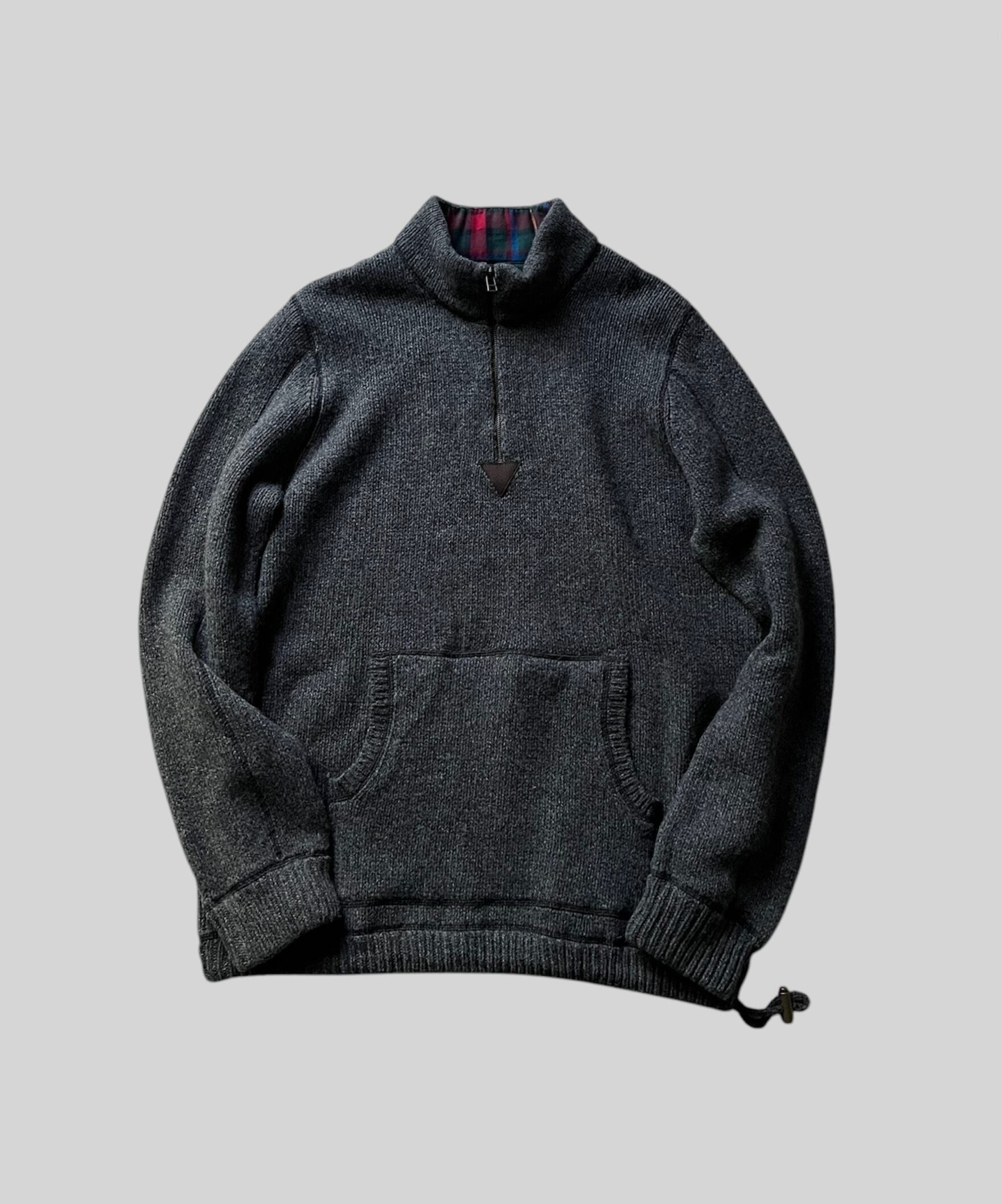 パーカーのフードを取って、ハーフジップにしたユニークな古着です